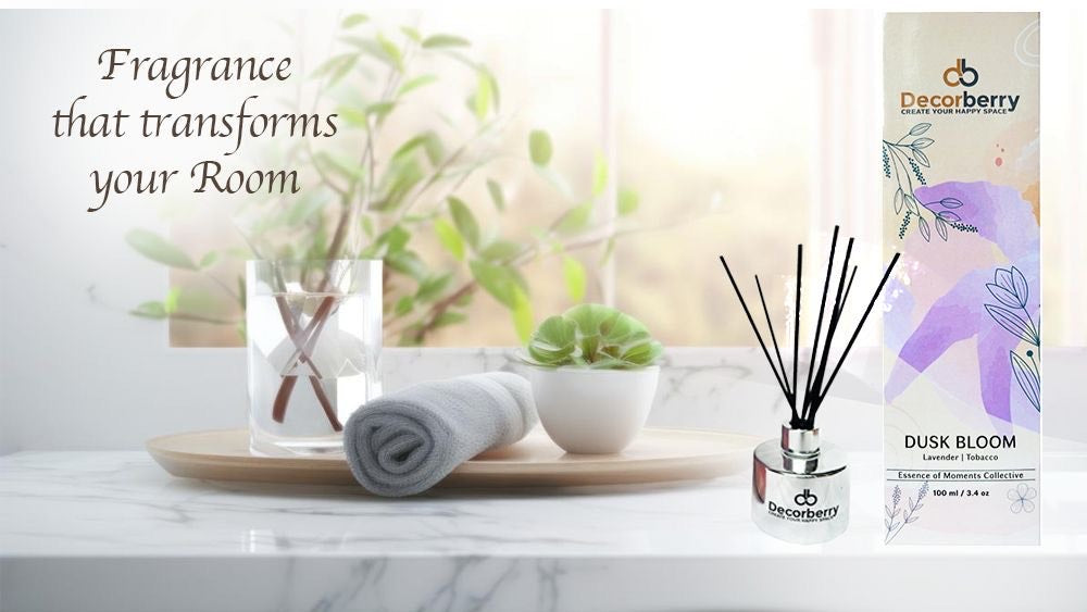 Lavender + Tobacco Reed Diffuser | 100ml Long-Lasting Aromatherapy with 8 Sticks | Decorative Silver Bottle for Home & Bedroom Fragrance